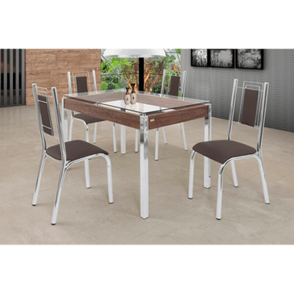 Mesa Bela 1,20 Com 4 Cadeiras Tampo de Vidro Retangular